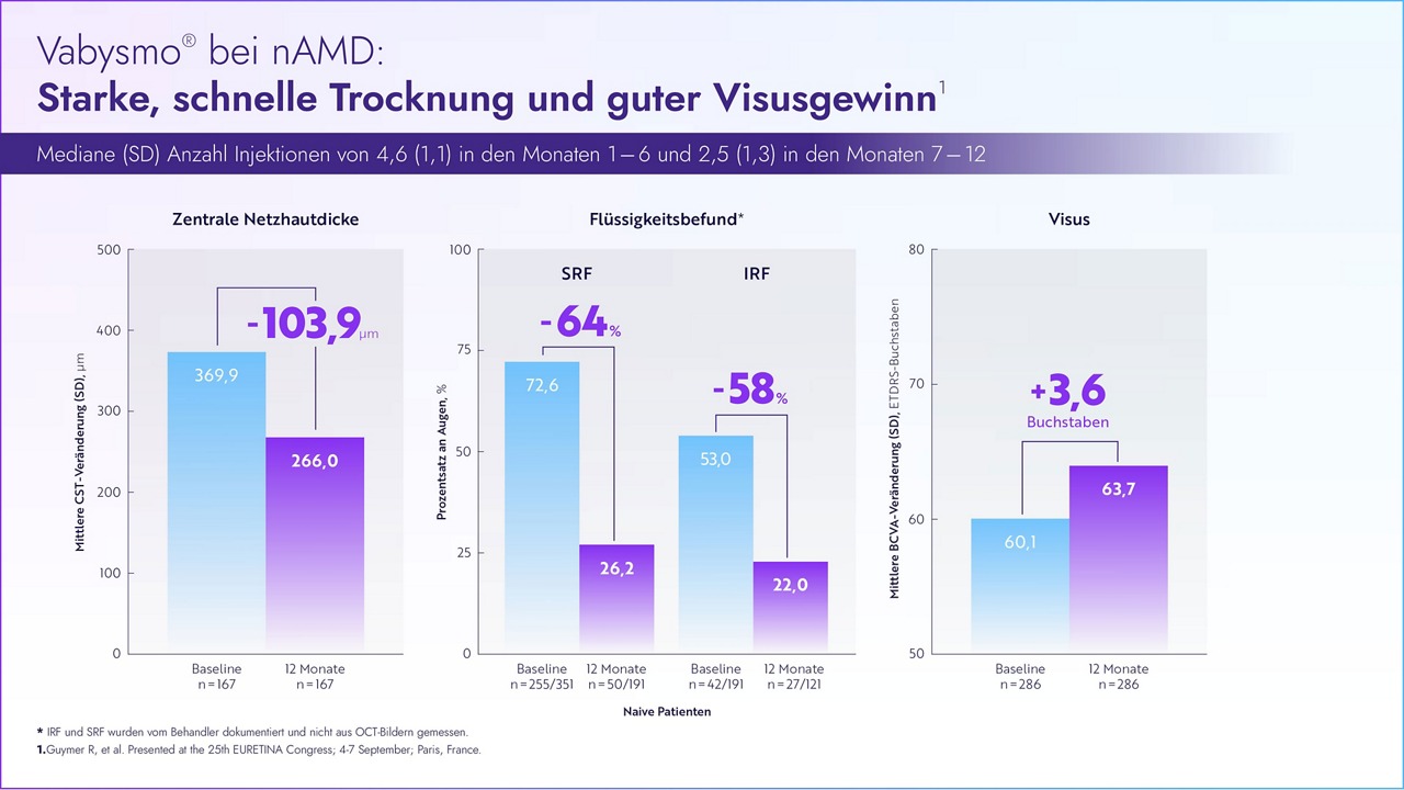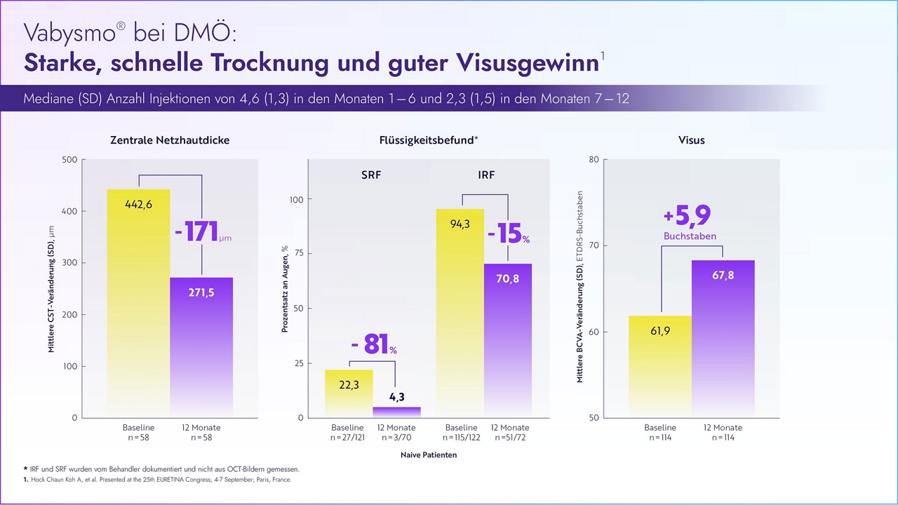 "Sehr schnelle, effektive Trocknung der zentralen Netzhaut, darüber hinaus einen guten Visusgewinn bei DMÖ um 6, bei nAMD um fast 4 Buchstaben und ein Sicherheitsprofil, das mit den Phase-3 Studien übereinstimmt."